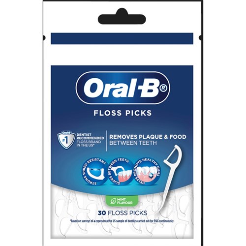 Oral-B Floss Picks removes plaque and food between teeth.