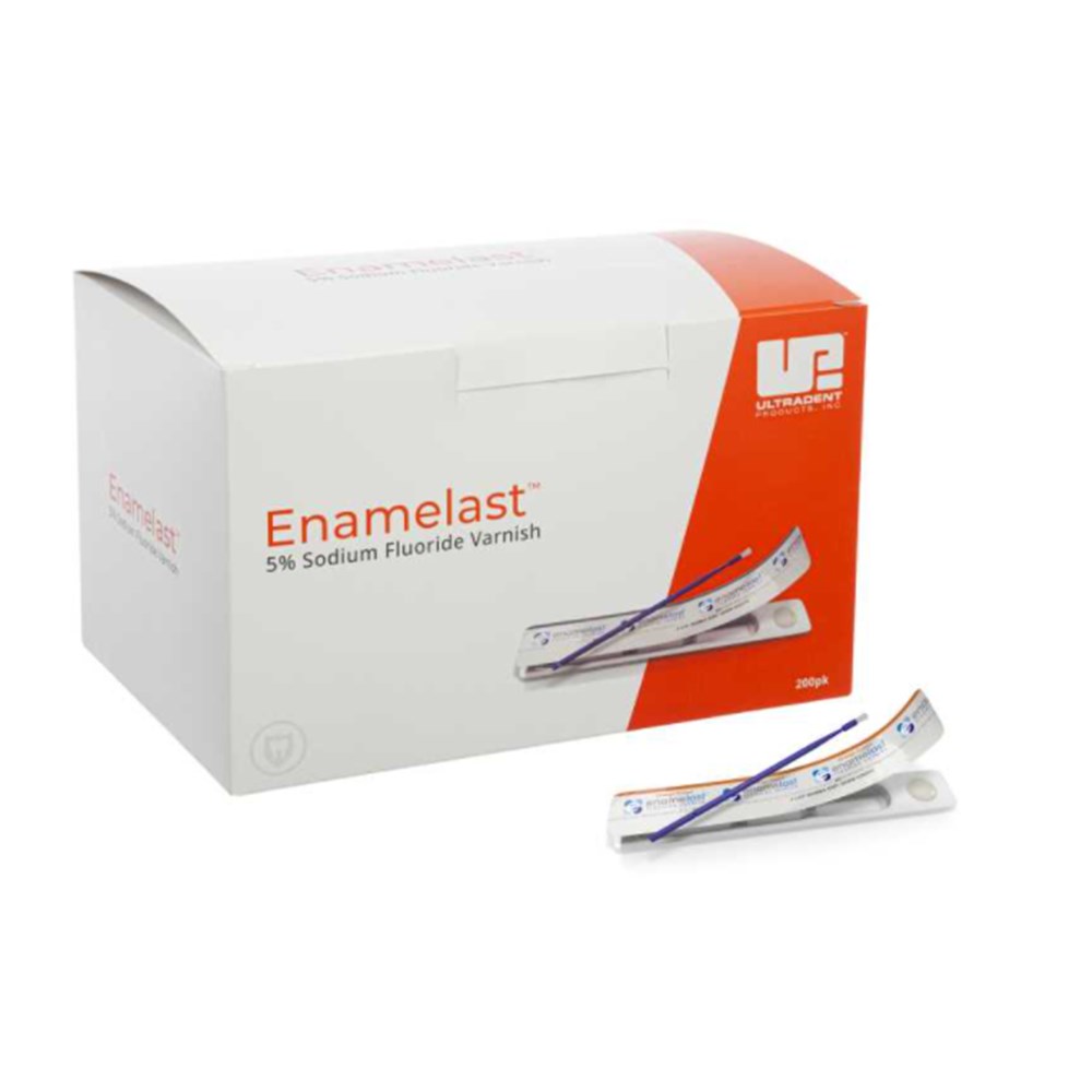 Enamelastâ„¢ fluoride varnish is a flavored, xylitol-sweetened, 5% sodium fluoride in a resin carrier that produces a mechanical/chemical occlusion of the dentinal tubules in the treatment of tooth hypersensitivity. Its patented adhesion-promoting formula enhances retention, providing superior fluoride release and uptake. It is non-gritty, nearly invisible in appearance, and is available in five great-tasting flavors and two delivery options. Enamelast varnish is nut and gluten free.