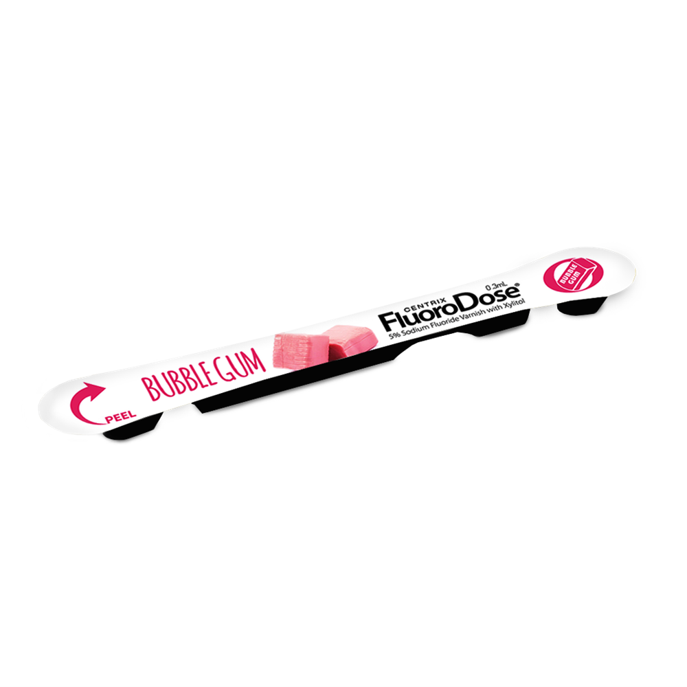 FluoroDose contains 5% sodium fluoride, the maximum dosage allowed in a convenient single-use LolliPack®.
