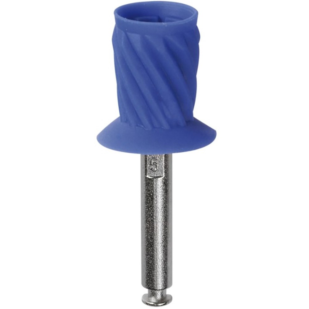 The Pro-Cup™ range permits the economical, splash-free application of prophy paste. Thanks to its unique lamellar inner and outer profile, Pro-Cup™ impels the prophy paste and saliva towards the edge of the cup on a helical principle. In this way, the formation of a splash-ball is avoided and the prophy paste is continually carried in the direction of the teeth, hence reducing heat through friction. Available in a soft (light blue) and a hard (dark blue) version.