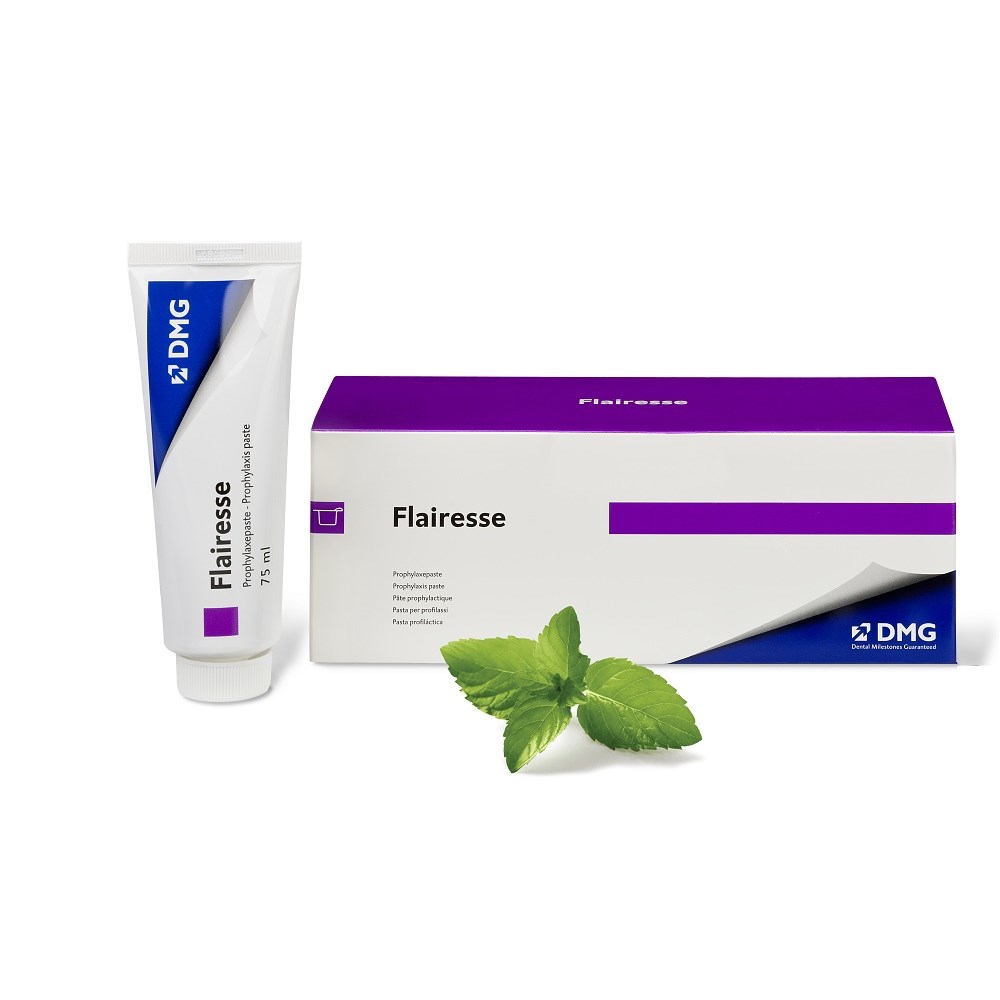 As a polishing paste, Flairesse prophylaxis paste reliably removes hard and soft plaque and extrinsic discolouration caused by coffee, tea and tobacco – without splashing or dripping. Three different abrasive grades enable thorough and gentle cleaning action.