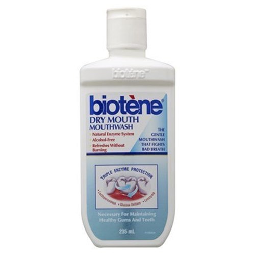 Biotène® Dry Mouth Oral Rinse is specially formulated to provide immediate Dry Mouth symptom relief that lasts for up to 4 hours while it freshens your breath.