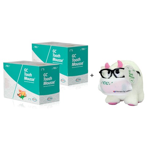 This bundle is made up of two boxes of Tooth Mousse and one Tooth Mousse plush cow marketing material used to promote Tooth Mousse in your practice.