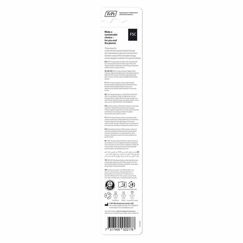 TePe Tongue cleaner helps reduce bad breath by removing bacteria from the tongue. Place the tongue cleaner at the back of the tongue and gently slide forward a couple of times.