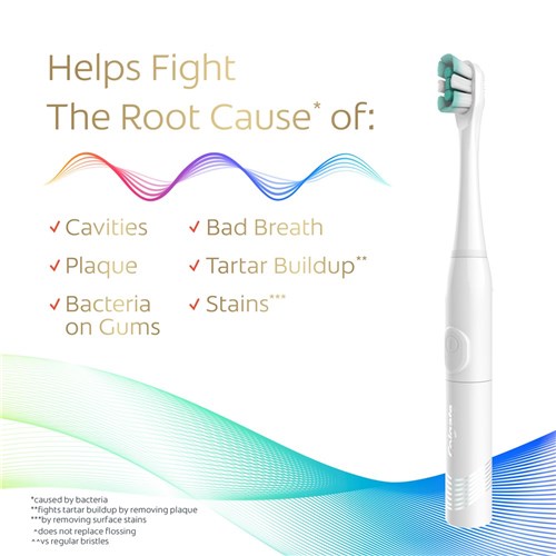 - SONIC VIBRATIONS: Breaks apart plaque for a superior clean (vs a manual toothbrush)