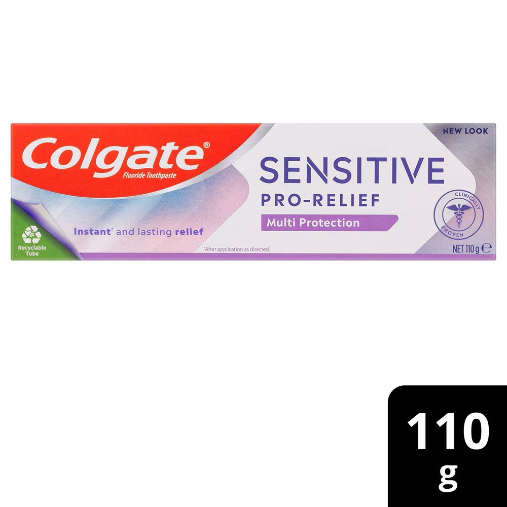Colgate Sensitive Pro-Relief Multi-Protection Toothpaste contains Clinically Proven Pro-Argin technology which plugs the tubules in dentine that lead to sensitivity pain. With regular brushing, it can help fight cavities, remove plaque, promote gum health, strengthen enamel, remove surface stains and freshen breath.