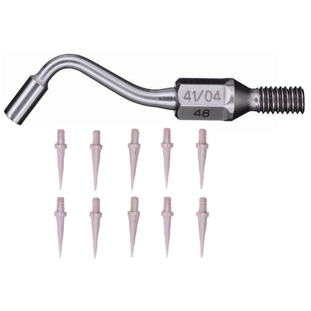 Clinical requirement: Subgingival cleaning of the smooth neck areas of predominantly titanium implants. Special tips are therefore required when professionally cleaning the teeth of patients with implants. Conventional, tempered steel scaler tips are hard and may damage the soft titanium on the surface, which encourages a swift build-up of plaque.