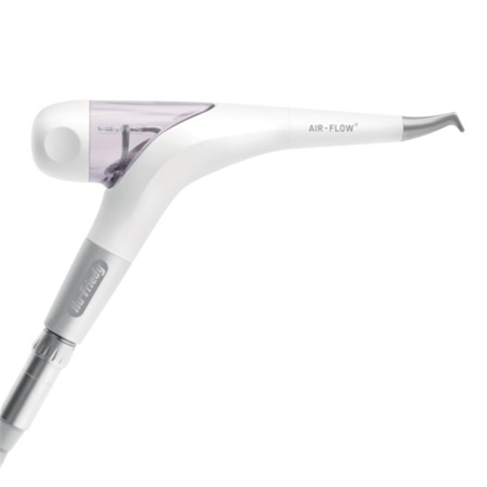 The AIRFLOW® handy 3.0 portable air polishing unit enables dental practitioners to efficiently, safely and comfortably perform air polishing and biofilm removal treatments. Designed with a team of ergonomics experts, the slim handpiece is easy to grip and rotate, while the position of the powder chamber ensures an unrestricted view of the patient’s mouth. Simply connect the handy 3.0 device to your dental unit for a simple, convenient air polishing experience.