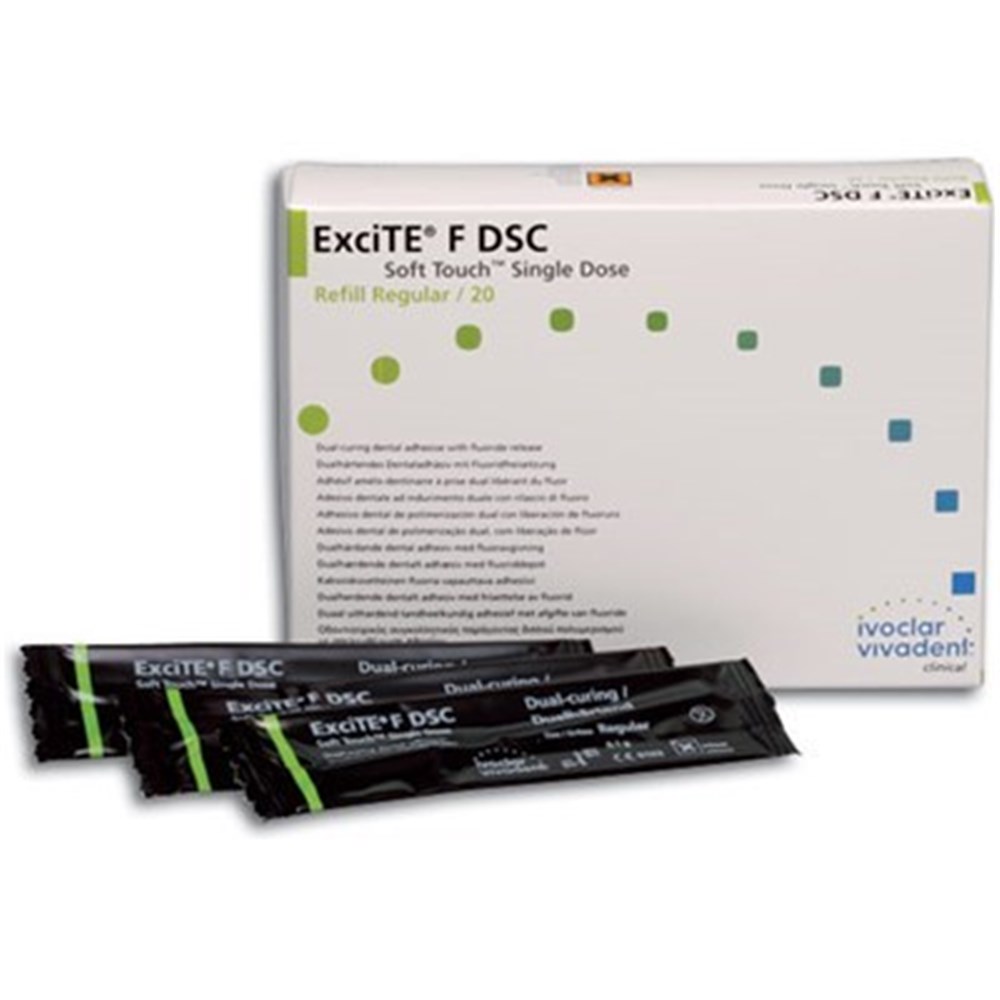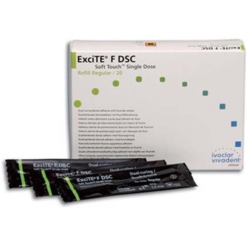 ExciTE DSC is a filled, dual-curing, adhesive for enamel and dentin bonding in conjuction with the total-etch technique. Cementation of endodontic posts, e.g. FRC Postec Plus Adhesive cementation of metal-free restorations Adhesive core build-ups or restorations with dual -or self-curing composites
