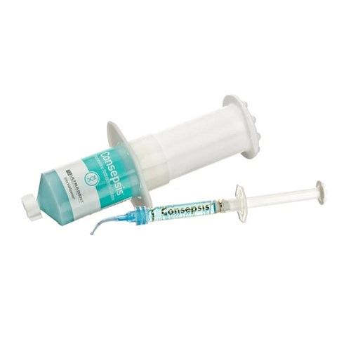 Consepsis antibacterial solution is recommended for procedural endodontic disinfection, as a final endodontic rinse prior to canal obturation,1,2 and prior to pulp capping. Consepsis solution should be used after smear layer removal for canal disinfection. Sodium hypochlorite and EDTA solutions should be rinsed and removed prior to using Consepsis solution.