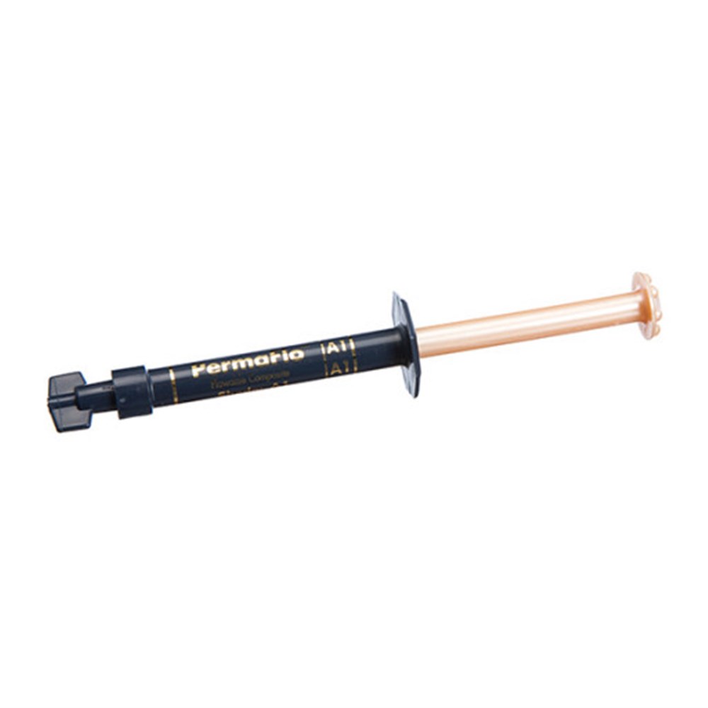 PermaFlo flowable composite is light-cured, radiopaque, methacrylate-based, and available in eight shades. Its thixotropic properties impart ideal flowability for improved adaptation. PermaFlo composite is 68% filled by weight, with an average particle size of 0.7μm and a low film thickness.