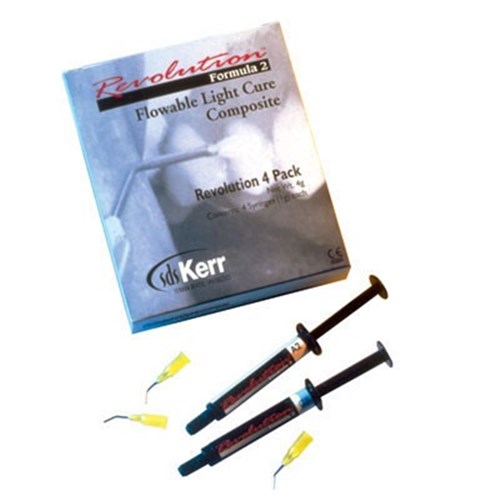 Flowable light-cured, hybrid composite for Class III, IV and V restorations that is 60% filled by weight with 0.6µm particle size filler. Revolution™ Formula 2 flows into the preparation for easier placement and contouring, which is ideal where minimally invasive techniques are indicated. It is dispensed via a 1g syringe with an application tip for increased accuracy and fingertip control. Revolution™ Formula 2 is fast and easy to use, providing excellent colour stability and polishing to achieve an exceptionally high quality aesthetic finish.
