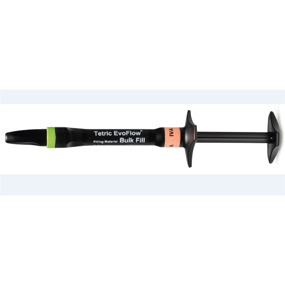 Tetric EvoFlow Bulk Fill is a flowable, light-curing radiopaque composite for direct restorations in posterior teeth. As its opacity increases during polymerisation, Tetric EvoFlow Bulk Fill is also suitable for discoloured tooth structure. It is applied in increments of up to 4mm as an initial layer in Class I and II restorations. Tetric EvoFlow Bulk Fill cures with light in the wavelength range of 400 - 500 nm (blue light).