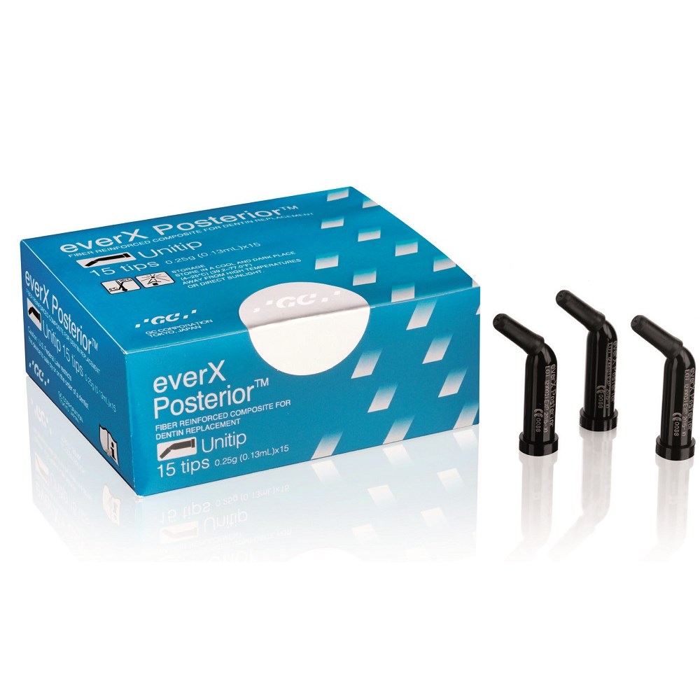 everX Posterior is a fibre-reinforced composite designed to be used as dentin replacement, in conjunction with a conventional composite such as Essentia Universal shade used as enamel replacement.