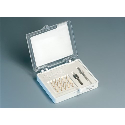High quality self-threading parapulpal retention pins to provide a reliable link between restorative filling material and dentine.