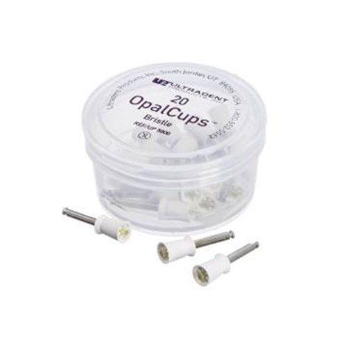 Ideal for removing superficial white and brown decalcification stains due to enamel mottling from fluorosis, Opalustre 6.6% hydrochloric acid slurry contains silicon carbide microparticles.1 This combination provides chemical stain removal along with gentle mechanical abrasion. OpalCups latch-type bristle polishing cups are used with the Opalustre slurry for micropolishing the newly treated enamel surface.