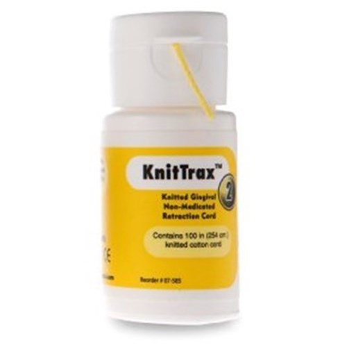 Knitted retraction cord. Compressible interlocking chains transport greater amounts of hemostatic agent to the sulcus. Offering more predictable, effective hemostasis and tissue management