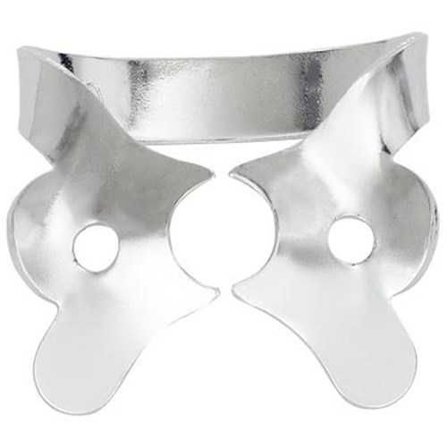 Each clamp is individually color coded for unmistakable identity. Experienced and novice assistants will appreciate this time saving identification when using Fiesta Color Coded Clamps. The Dam is hinged to the wings of the clamp outside the patient’s mouth. The dental dam, dental dam clamp and frame are all simultaneously positioned into the patient’s mouth. Once applied, the dam is stretched off the wings of the clamp.