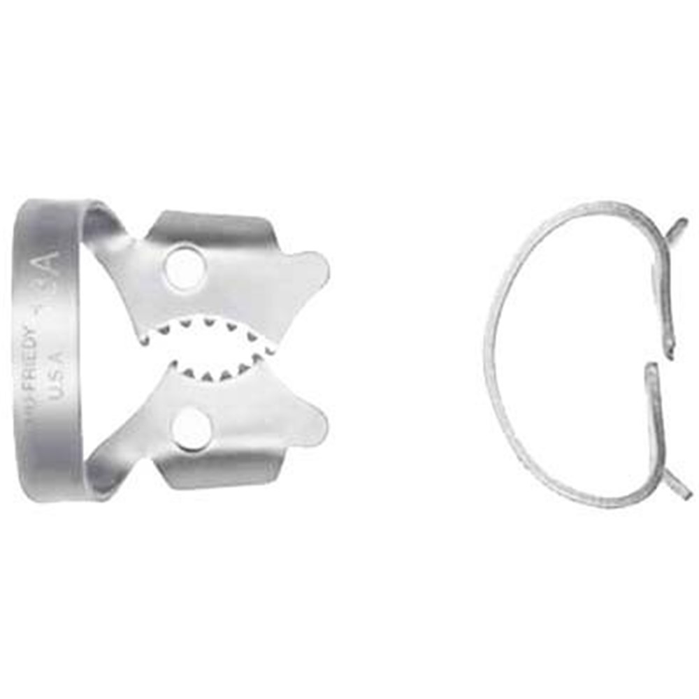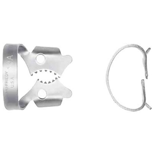 One of the many clamps in Hu-Friedy's extensive line of rubber dam clamps for anterior, premolar and molar application. The dark coating provides beautiful intraoral contrast, making the restoration site easier to navigate. A matte finish on the clamp helps reduce glare caused by operatory lights for less eye fatigue.