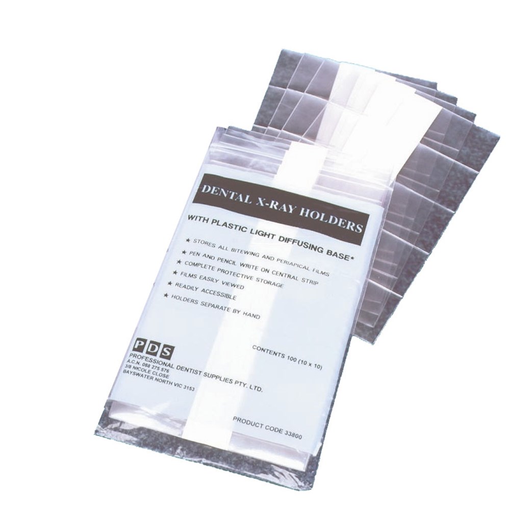 Plastic dental OPG sleeves with a light diffusing base. Ideal for storage and viewing OPG films. White strip can be written on and hole punched for easy filing.